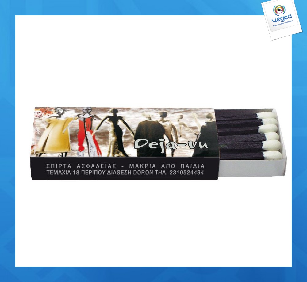 - Boîte de 15-17 allumettes personnalisable selon couleurs Pantone ou quadrichromie.