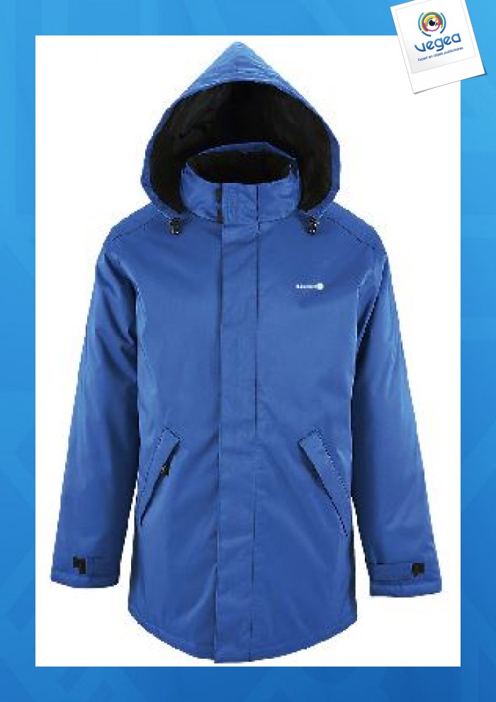 OXFORD - 100% polyester - Enduction PVC - Doublure 100% polyester - Matelassage 100% polyester 170 g/m² - Ouverture zippée double curseur avec patte auto-agrippante et pressions invisibles - Capuche sous col - Col intérieur doublé polaire -2 poches extérieures zippées avec rabat -1 poche intérieure -Patte de resserrage poignets