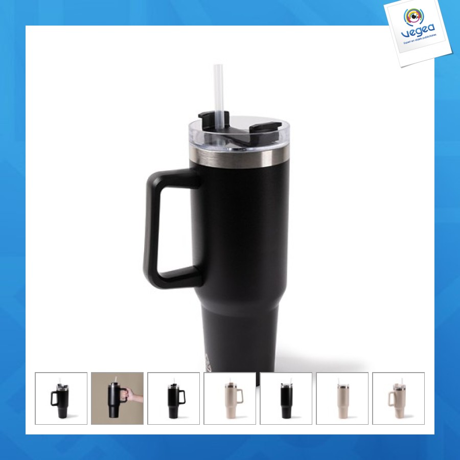 Bouteille thermos grande capacité spécifiquement 1, 18L, double paroi avec paille et anse Matière : Acier Inoxydable recyclé