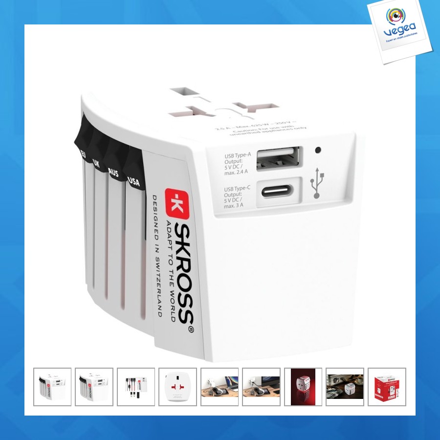 SKROSS Adaptateur personnalisable de voyage universel MUV 2-Pôles avec USB