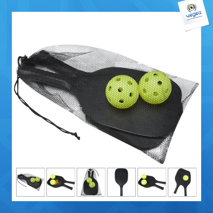 Jeu de raquettes personnalisables Enrique dans une pochette en filet