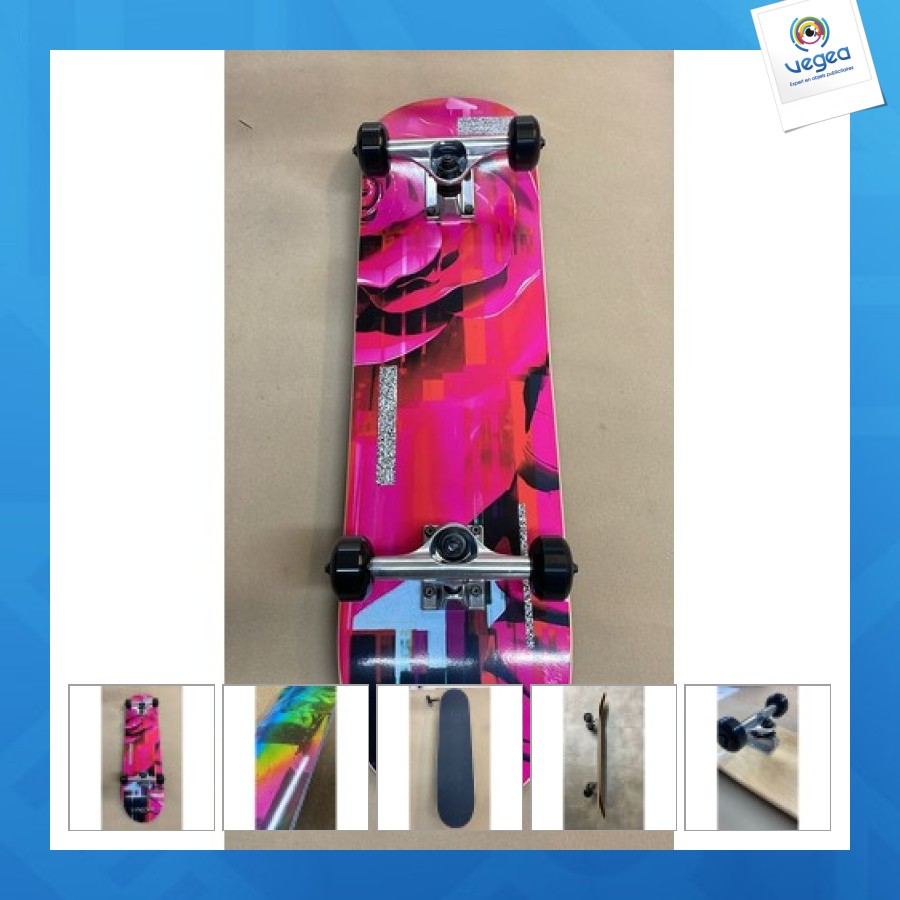 Skateboard personnalisable, 4 roues, 2 trucks, Sticker allover quadri sur côté sol, fabrication françaiseDélai de livraison : 5 semaines