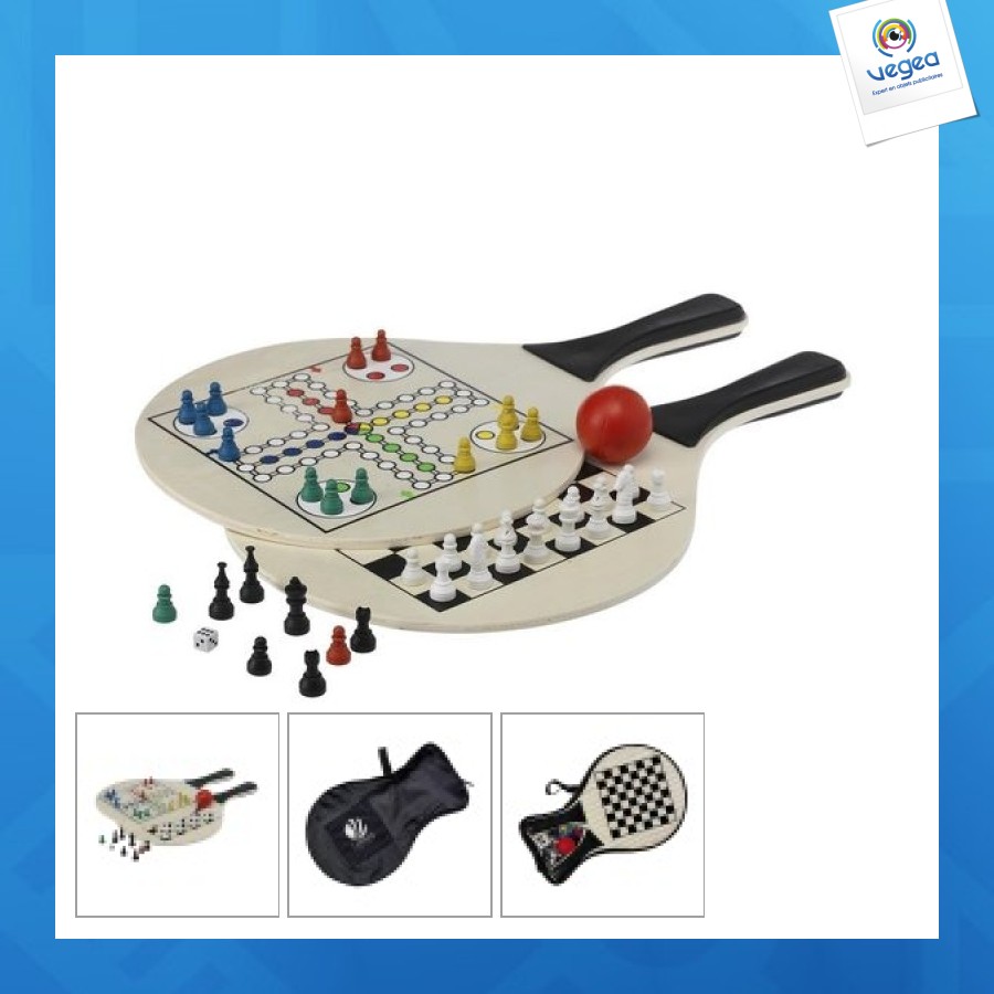 - Raquettes en bois avec design de 2 jeux différents