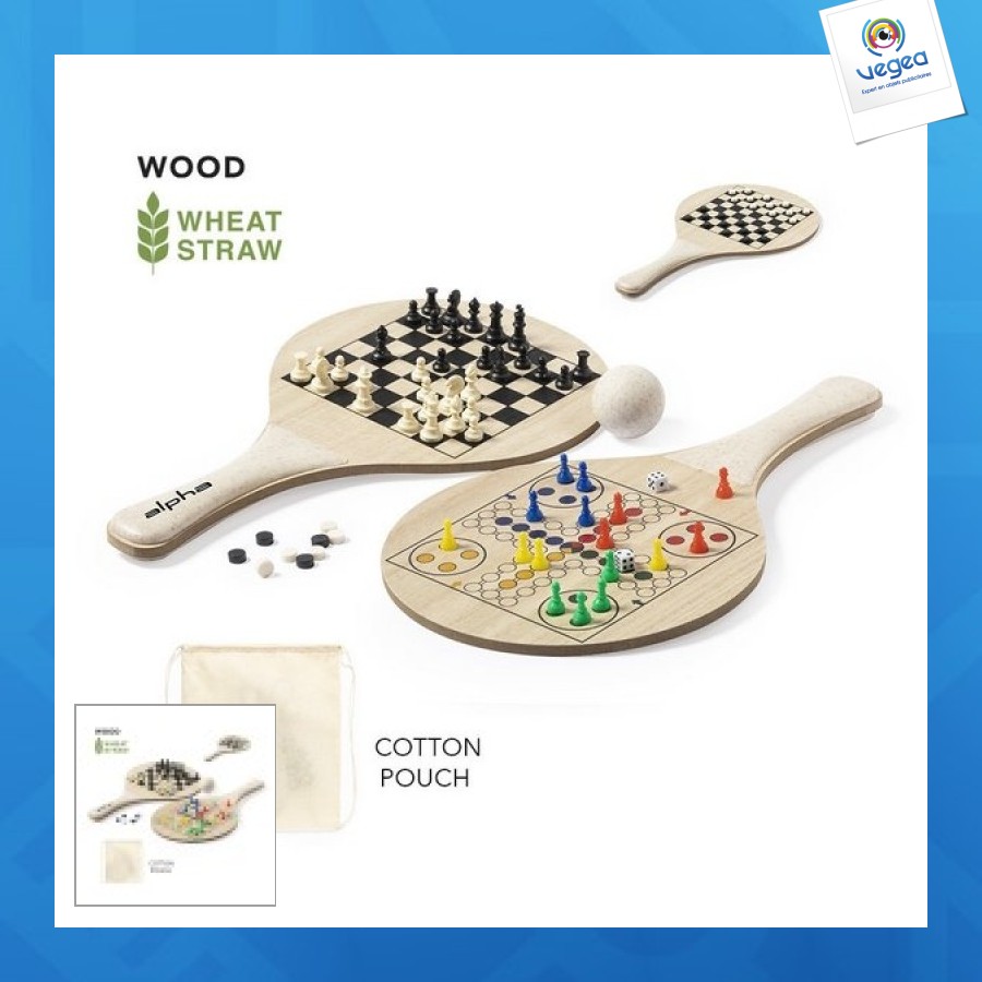- Raquette de plages avec jeux intégrés : échecs, dames et ludo